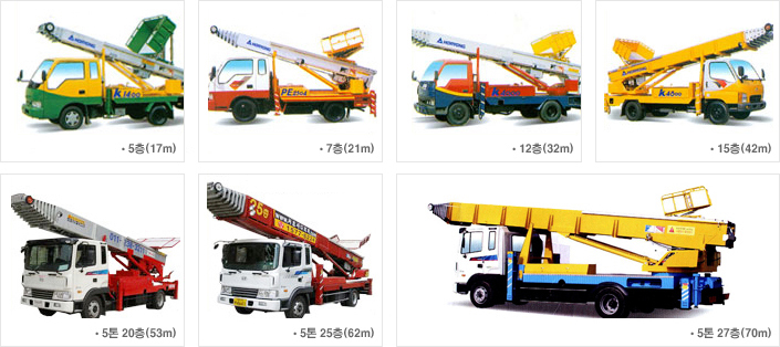 일반 카고 차량에 특장회사 장비를 탑재하여 수직으로 고층의 화물을